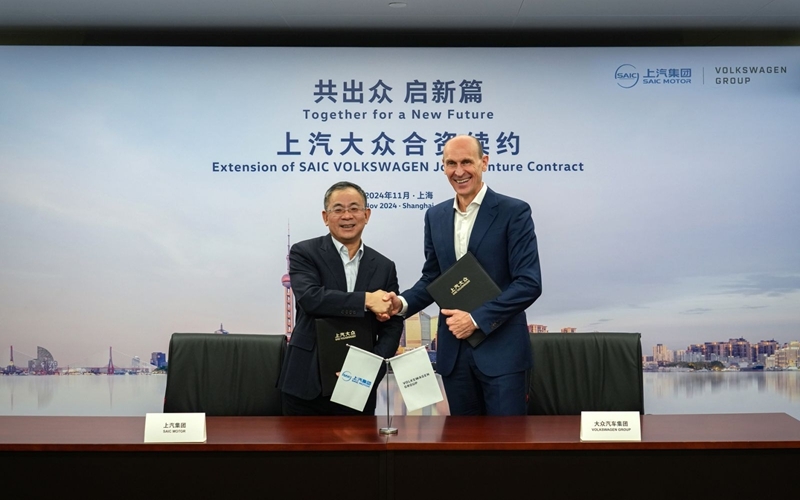 中国财富网讯 11月26日,上汽集团与大众汽车集团在上海签署延长合资协议,将上汽大众的合资期延长至2040年,进一步加强双方的长期合作伙伴关系。