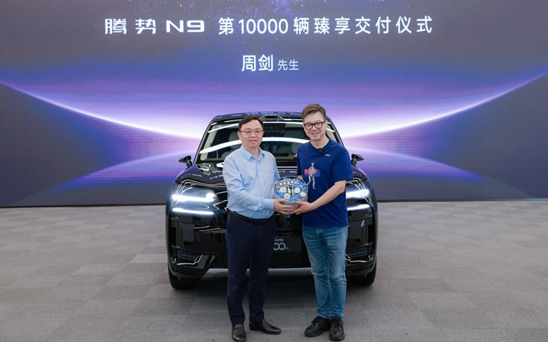 中国财富网讯 近日,腾势汽车在深圳比亚迪全球总部完成了第10000辆腾势N9的交付。比亚迪集团总裁王传福在交车仪式上将车钥匙交付给了第10000辆腾势N9的车主:优必选科技创始人、董事会主席兼CEO周剑。